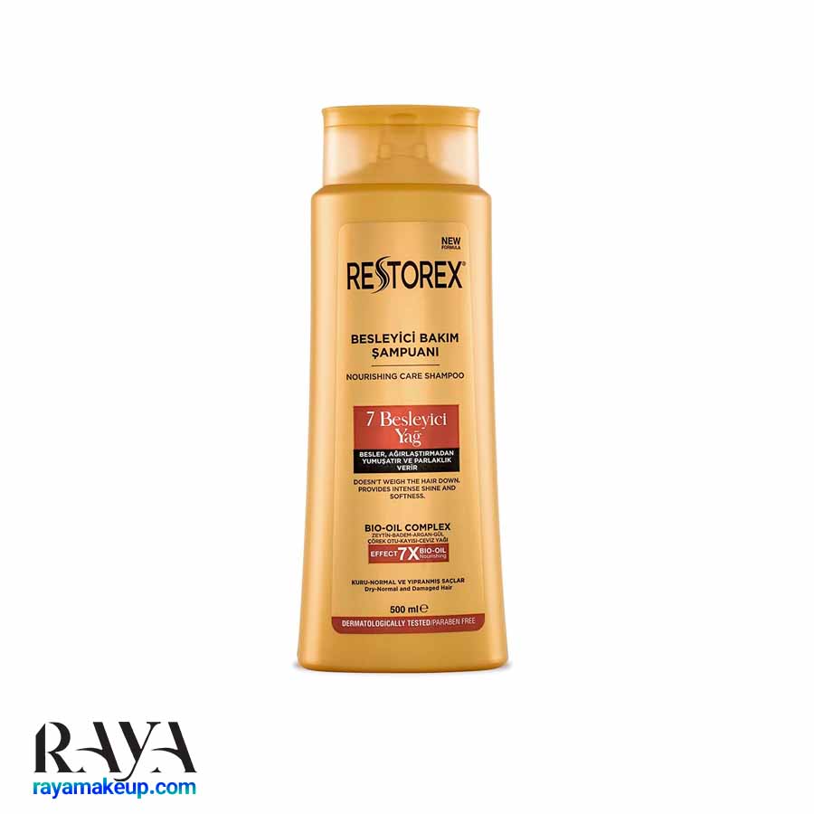 شامپو تغذیه کننده موهای خشک و آسیب دیده Restorex قدرت پاکسازی موثری دارد. بنابراین پوست سر و موها را کاملا تمیز و تازه می کند. این شامپو به سلامت و زیبایی موها نیز کمک می کند. زیرا باعث تقویت و تغذیه موها و نرم و درخشان شدن آن می شود. همچنین بدون احساس سنگینی و چربی؛ موها را صاف و لطیف می سازد. ترکیبات روغنی مغذی این شامپو به بهبود وضعیت موهای آسیب دیده نیز کمک می کند. در نتیجه به مرور موهایی سالم تر به شما می بخشد.